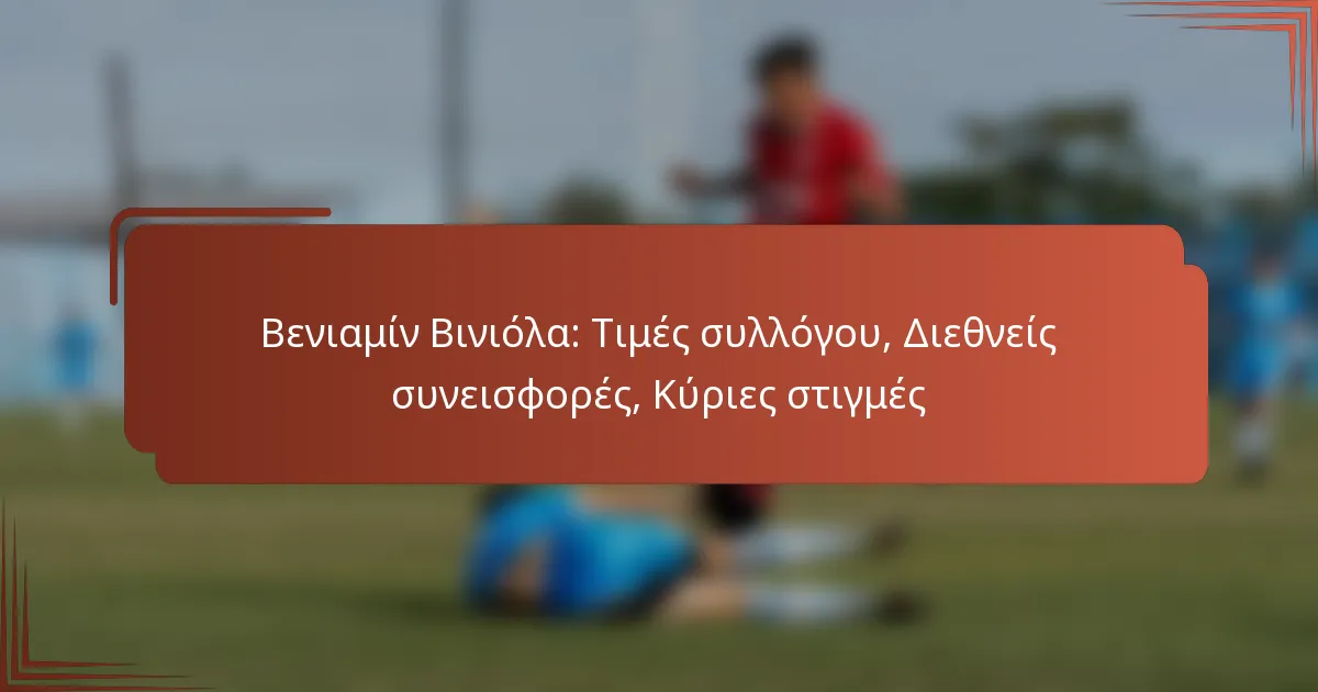 Ο Μπενιαμίν Βινιόλα έχει καθιερωθεί ως μια αξιοσημείωτη προσωπικότητα στο ποδόσφαιρο, επιτυγχάνοντας σημαντική επιτυχία σε επίπεδο συλλόγου με πολλούς τίτλους και διακρίσεις. Οι διεθνείς του συνεισφορές αναδεικνύουν περαιτέρω το ταλέντο του, καθώς παρουσίασε τις ικανότητές του σε σημαντικά τουρνουά και επηρέασε τις στρατηγικές της ομάδας. Κύριες στιγμές κατά τη διάρκεια της καριέρας του δεν έχουν μόνο καθορίσει την κληρονομιά του, αλλά έχουν επίσης αφήσει μια διαρκή επίδραση στο άθλημα, εμπνέοντας τις μελλοντικές γενιές παικτών.